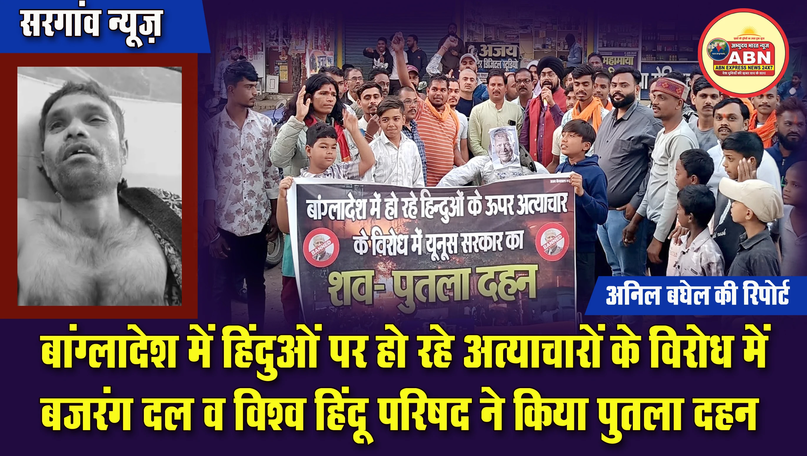 सरगांव : बांग्लादेश में हिंदुओं पर हो रहे अत्याचारों के विरोध में बजरंग दल व विश्व हिंदू परिषद ने किया पुतला दहन